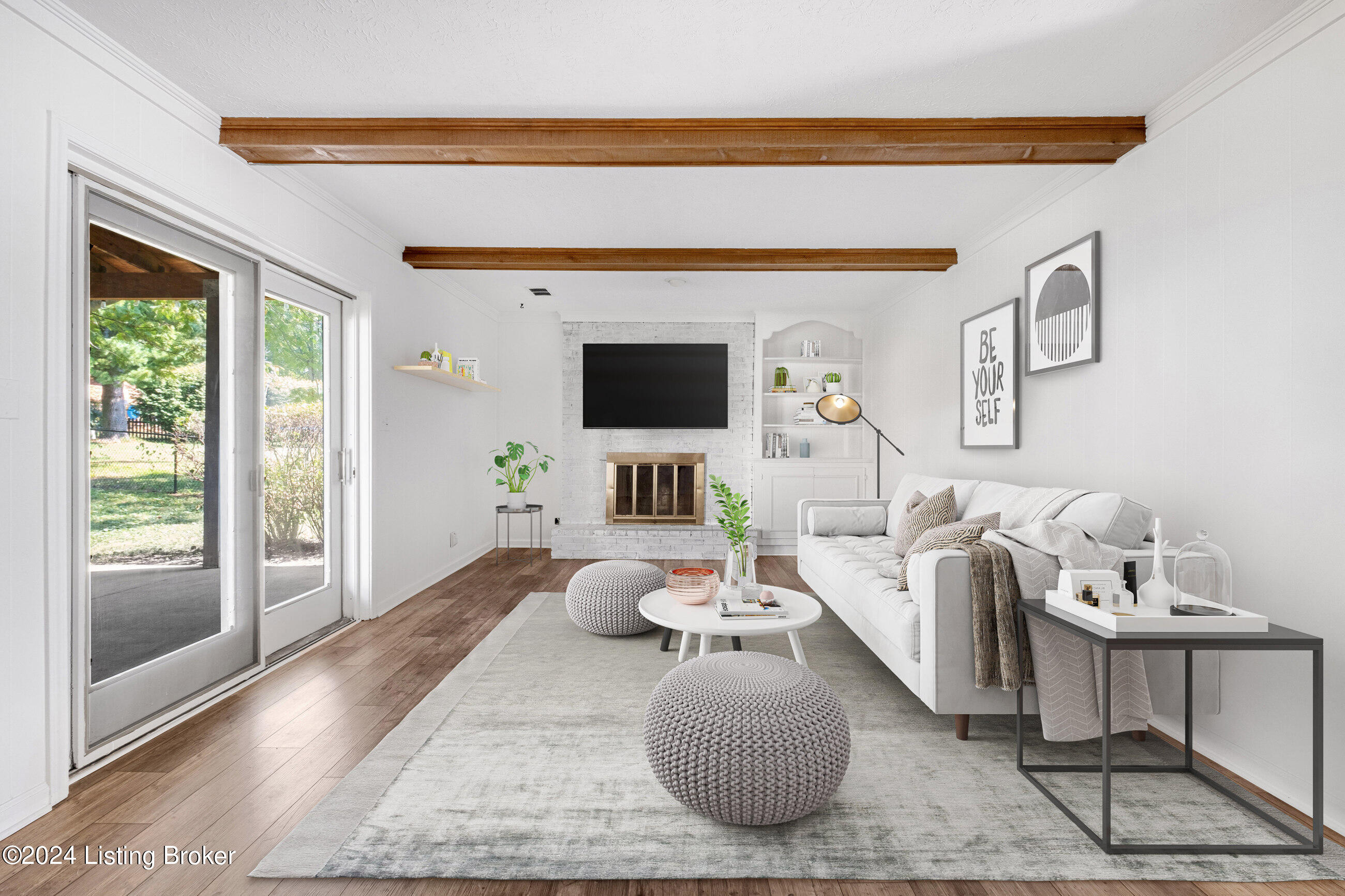 The main level features a hybrid living and dining space leads to your kitchen with stainless steel appliances, quartz countertops and a large bar area with ample countertop space. Large windows allow for plenty of natural light, creating a bright and welcoming space.